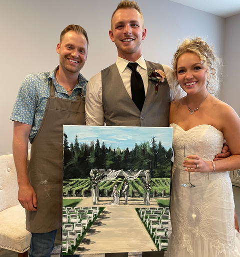 As you exchange vows, share your first dance, or steal a quiet, intimate moment together, I’ll be there—translating your love onto canvas in real-time. Each brushstroke tells a piece of your story, creating a one-of-a-kind masterpiece that forever preserves the magic of your wedding day.